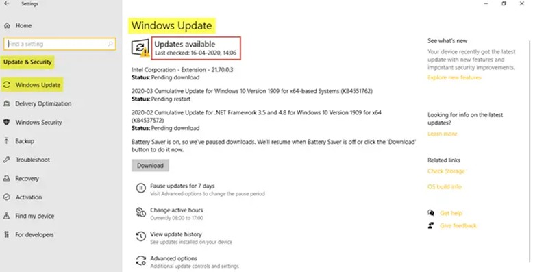 - Now, go to Update & Security > Windows Update and check if any updates are pending.